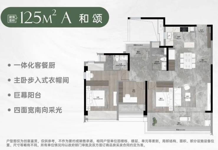 125平方和颂:(3+1)室2厅2卫,超大阳台