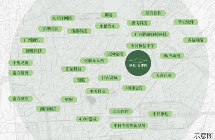 项目周边汇聚天河区党校、执信中学(天河校区)、网易、太平洋网络、中国移动、中国电信、小鹏等2500多家高新企业,与高知高净值圈层为邻,仅500多户圈层纯粹,谈笑有鸿儒,往来无白丁。