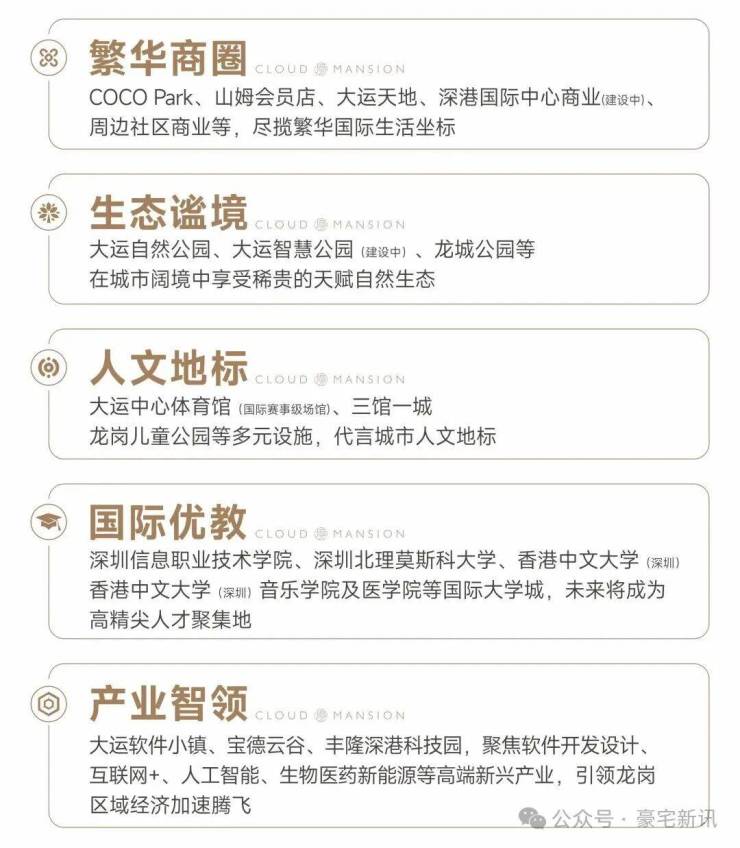 大运新城-深圳东部唯一“城市会客厅”,与前海中心、深圳湾超总、香蜜湖金融街等区域并列深圳六大城市会客厅,汇聚东部大型综合交通枢纽,标杆性文化体育场馆、产业精英商务群、国际大学城等优势,大运新城将成为深圳东部重要发展极点,推动深圳东部增长。