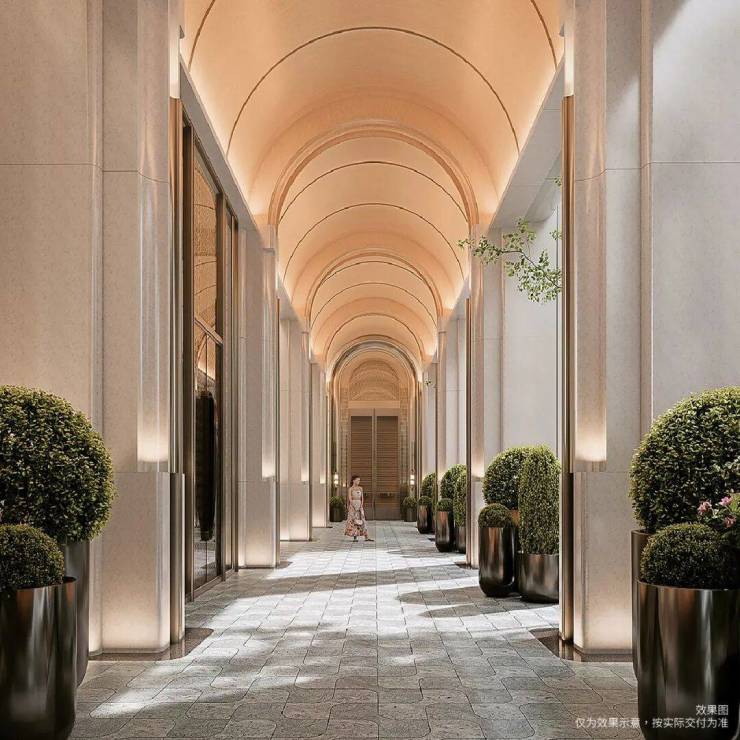 公区采用奢石、金属、艺术长廊设计,环岛落客+星级大堂,归家就是度假。