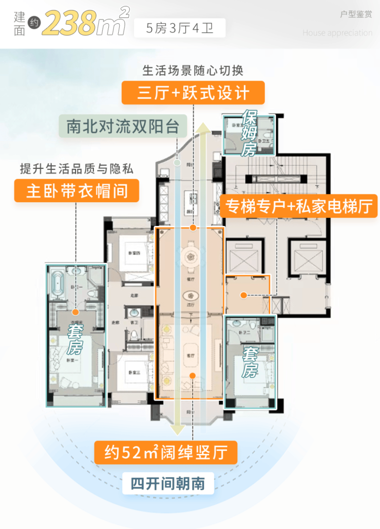 设计亮点:• 270°环幕江景,15.6米超长采光面;