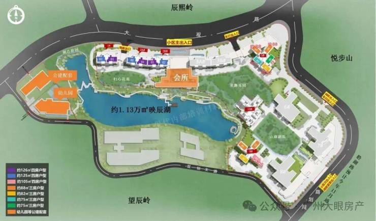 总栋数:9栋(6栋塔楼,3栋板楼)映辰湖约1.75万㎡环湖带;