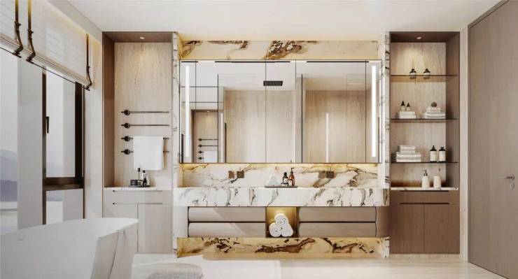 主起居室首创三合一套间设计,在卫浴间、衣帽间基础上,增设独立藏品间,专属收纳珠宝、艺术品等珍贵物品,彰显塔尖人群的品味与收藏需求。