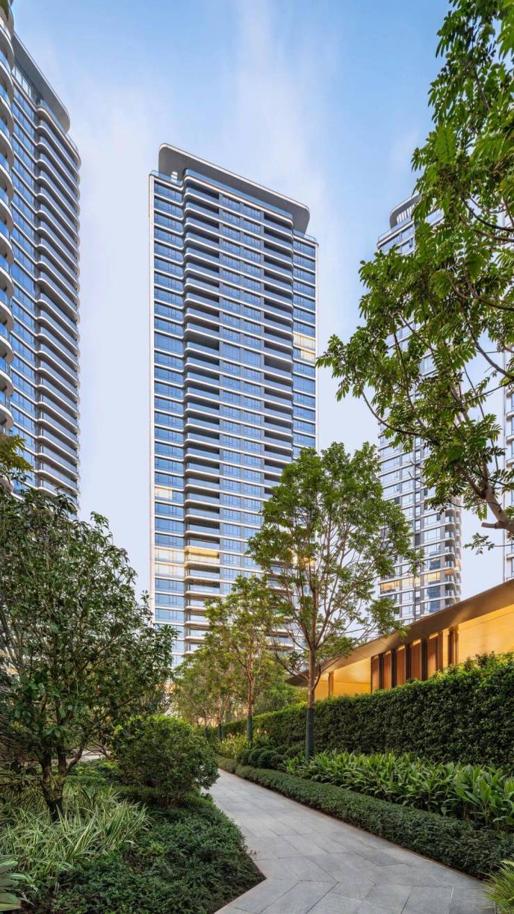 整体园林以传统岭南造园哲学为内核,巧用 “向外借景、向内造景” 的手法,构筑兼具生态肌理与人文意趣、可达可居、可游可望的居住群落;同步打造五重景观层级与无风雨归家动线,让自然意趣与尊享体验贯穿日常。