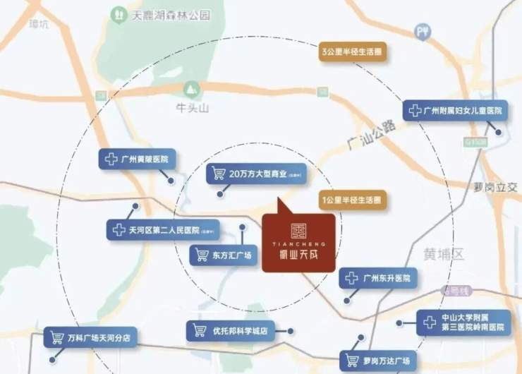 1、项目临近天河智慧城,直线距离约3公里,自驾通勤便捷,未来可承接天河外溢需求。