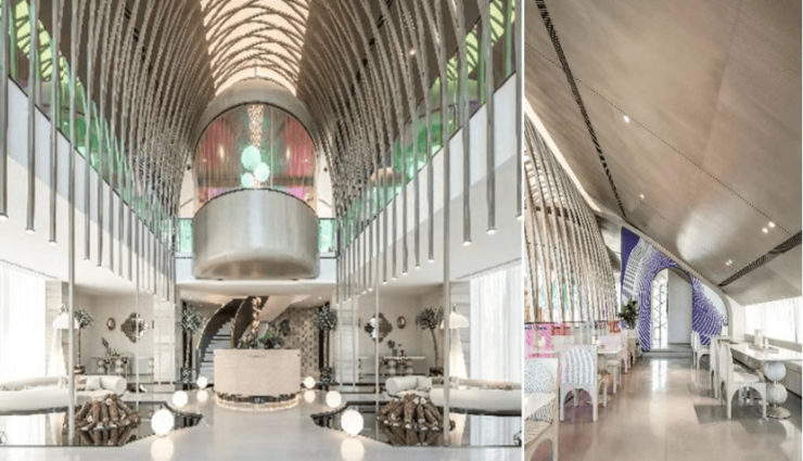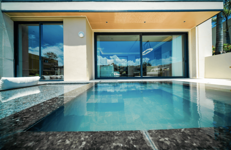 首先一层,比较亮眼的是前庭后院双花园,有天有地的同时,还实现了温泉入户,真正实现了归家即度假。值得一提的事,前庭花园旁还设计了一个套间,可以打造成客房或者长辈房,与别墅建筑动静分离,互不打扰,三代同堂也能岁月静好。