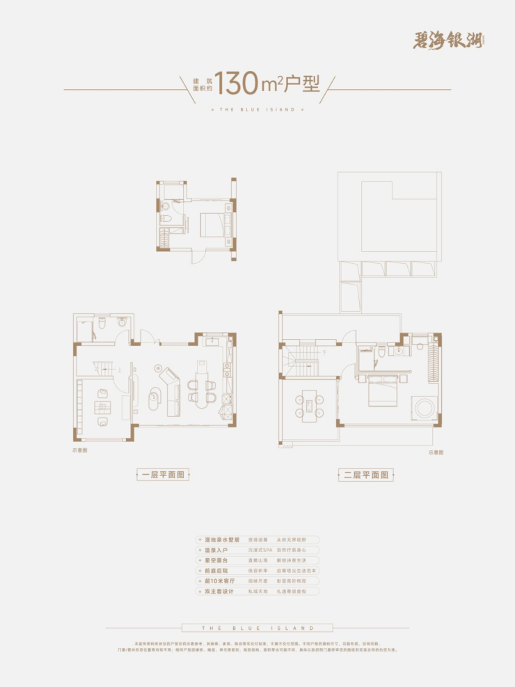 空间设计上来看,约130平别墅产品,为上下两层空间,实用率较高。