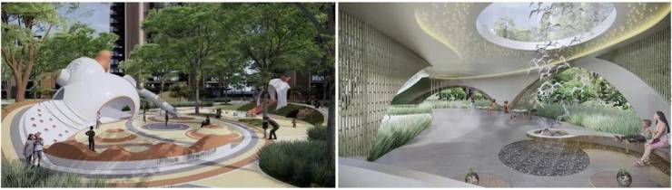 1小区内部还打造了5万方凤凰展翅主题园林,相当于20个足球场的规模,内部搭配了儿童乐园、邻里花园、健康跑道等多个主题活动空间。