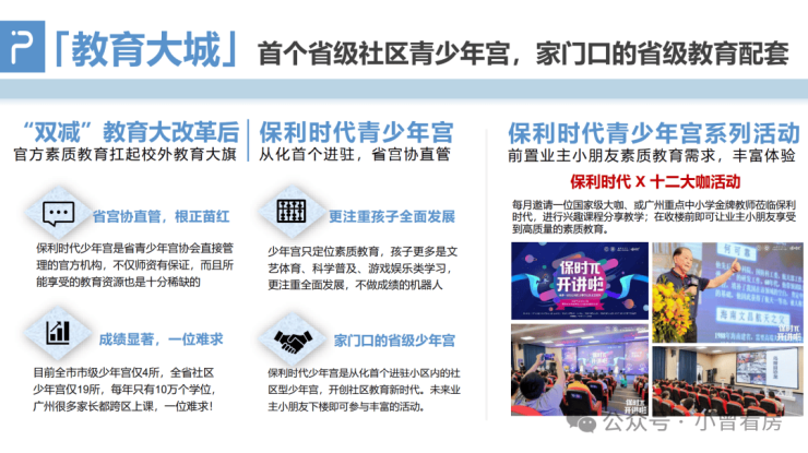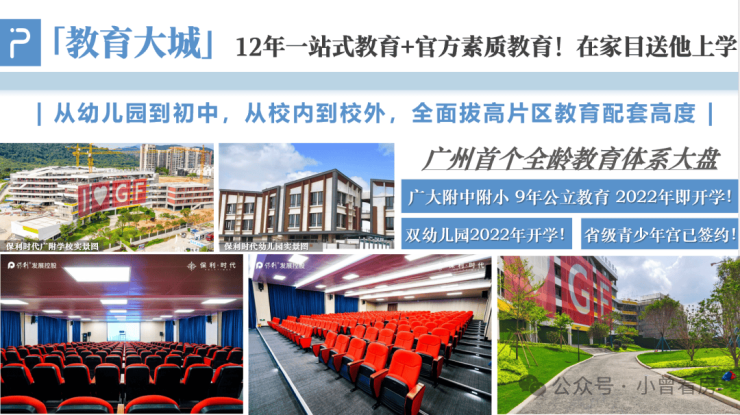 双幼儿园、4.5万㎡45班制广大附中附小、广东省首家省级直属社区青少年宫,12年一站式优质教育;