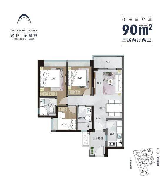 相比2021-2022年高峰期,横沥岛新房价格已有明显回调。目前能建·湾区金融城主力户型总价区间更贴近刚需及刚改群体,部分88㎡四房产品总价已下探至200万出头,成为南沙少有的“低总价+地铁+四房”组合。