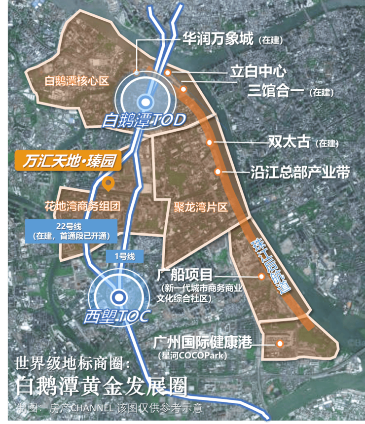 万科万汇天地·瑧园实际上是万科广信资产包的一部分。整个花地湾板块,总占地 1平方公里,1500亩。相当于至少150个足球场的那么大。这连片开发出来,比广钢新城的规模还要大。