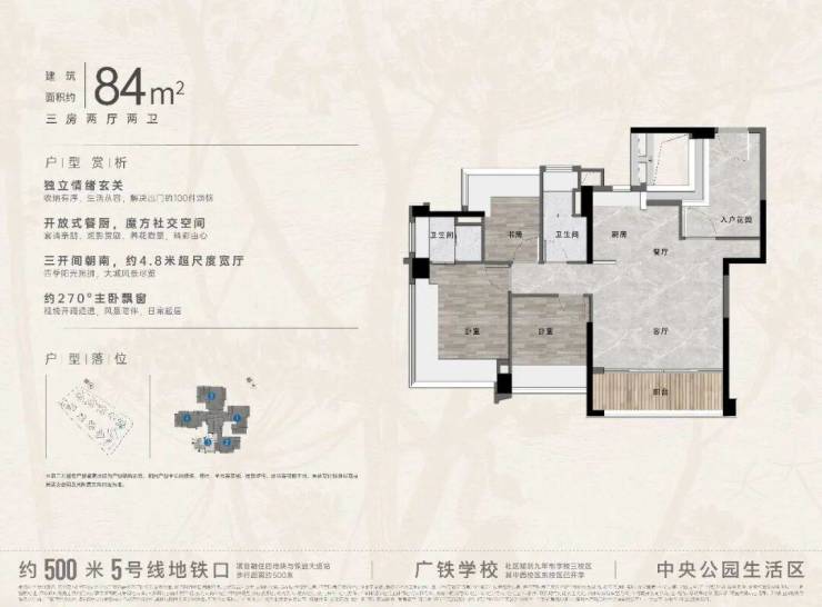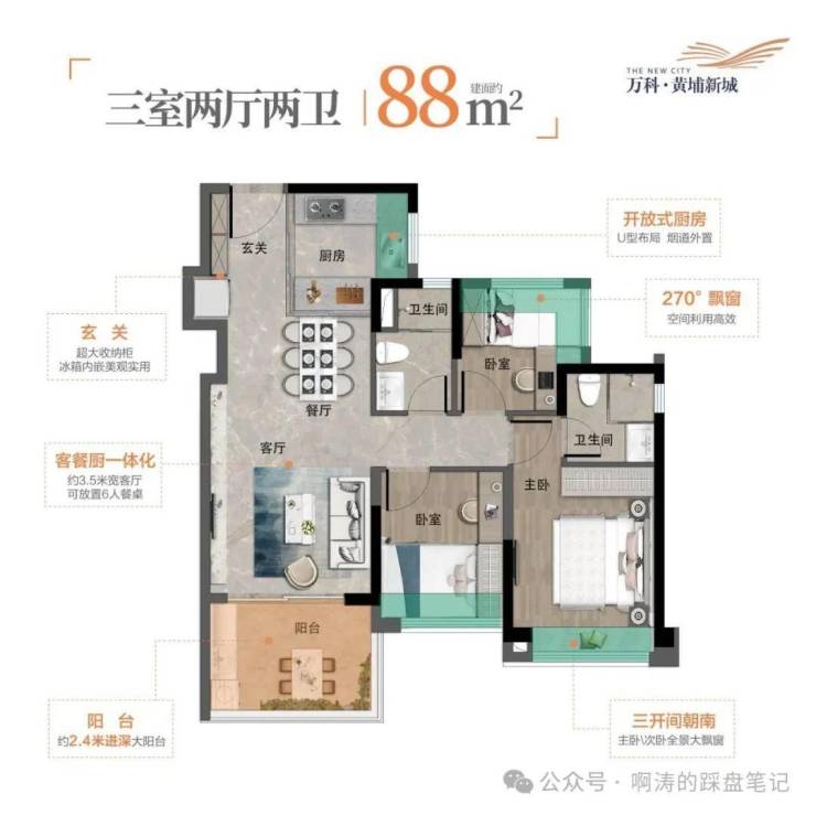 2⃣️建面约88㎡三房两卫(珍稀31套!)