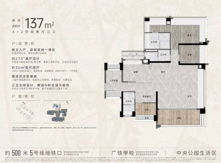 5⃣️建面约137㎡ 3+2空间(天花板!)