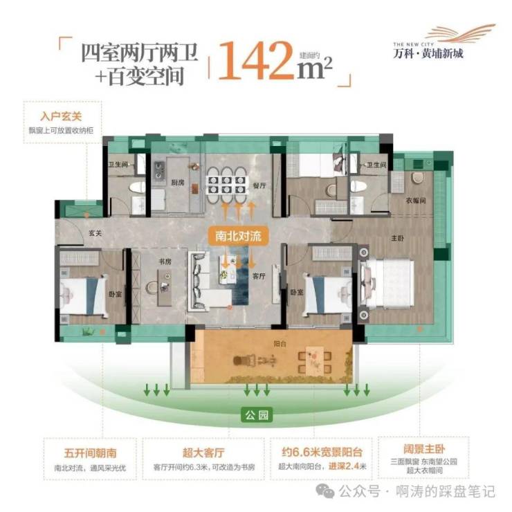 能做4房你敢信吗!经典南北通王者,还可以干多一个空间!! 主卧独立衣帽间,望公园景的稳赚之选!