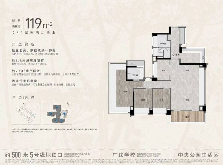 总裁的房子!真3卫!可做双主套,百变X空间(书房/健身房自由),6米巨厅+双面采光,推窗即绿核公园无敌视野!