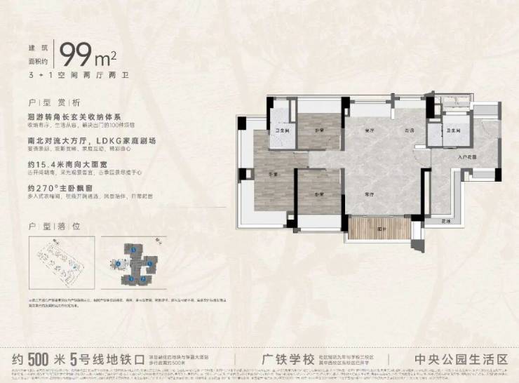 3⃣️建面约99㎡ 3+1空间(高层升级建面约108㎡)