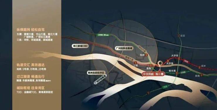 【潜力足】规划建设临江大道东延线、鱼珠隧道、沙鱼洲隧道、金融城广场综合枢纽中心、黄埔高铁站系列交通配套,构建黄金十字轴线