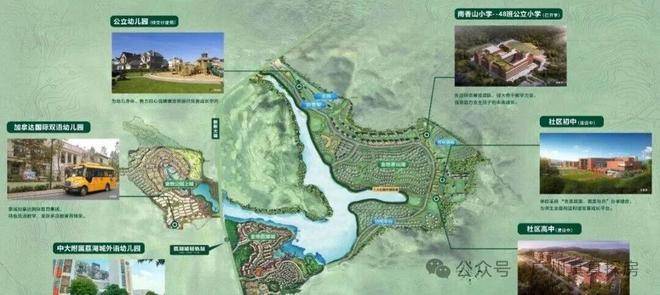 约4000亩湖山生活大盘,20万方社区生活配套,社区共有7所公私立学校,从幼儿园、小学、初中,再到高中,15年配套俱全。