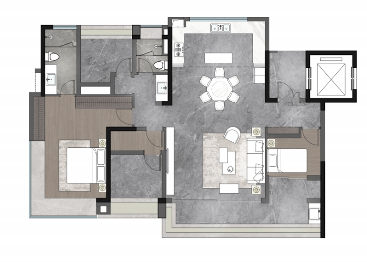 建面约170㎡航母大平层,LDKG世界会客厅,南北通透,层大人物的生活主场,豪华双套卧,主卧270度飘窗配尊崇衣帽间及酒店式双台盆;