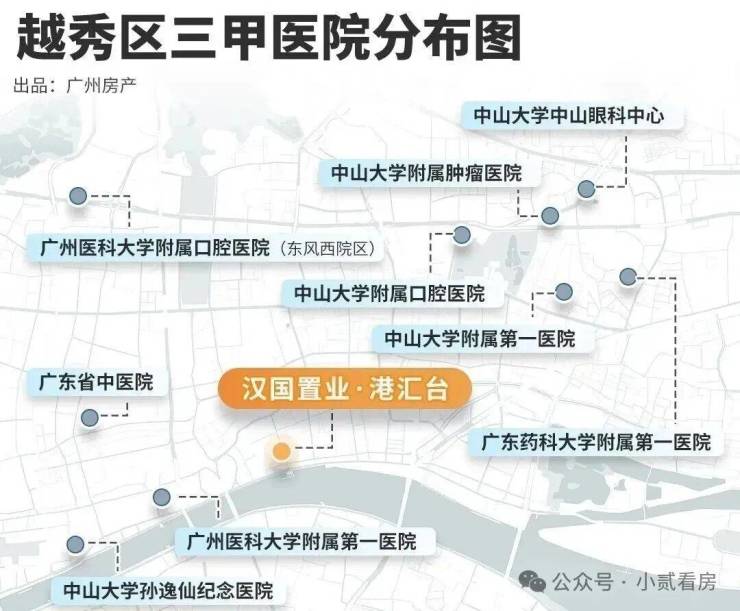越秀区拥有352家医疗机构,占全市1/3医疗资源。港汇台,2公里范围内就有4家三甲医院(孙逸仙医院、广医一院、广东省中医院、中大附属肿瘤医院)驾车约10分钟即达,为健康保驾护航。