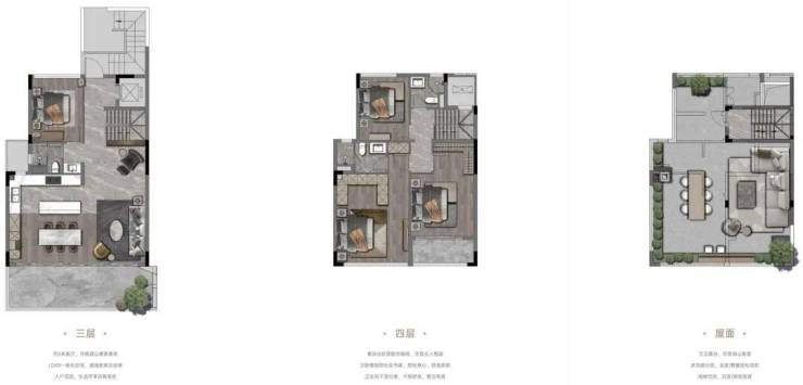 同时,叠院实现了空间分层、动静分离,既有楼下生活动区的自由洒脱,又有楼上生活静区的高质享受。此外,还打破一“层”不变的生活,业主可以根据自己的喜好,任意打造空间。