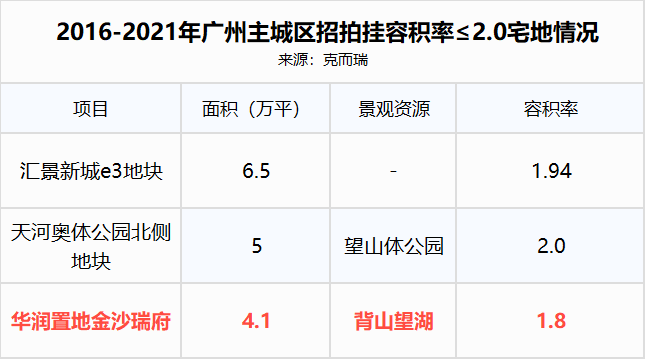 再换个维度,近5年广州通过招拍挂的宅地,其中,容积率低于2.0、又位于市中心核心地段的,只有3宗。(来源:克而瑞)