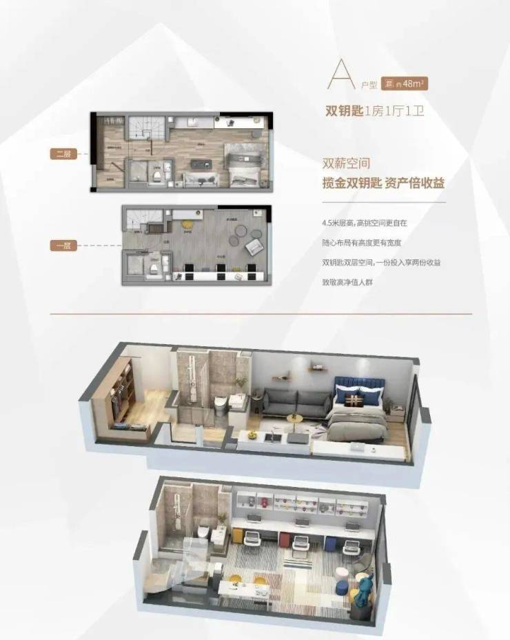 4.5米层高的LOFT,中空墅级客厅设计,满足一层创业,一层居住。
