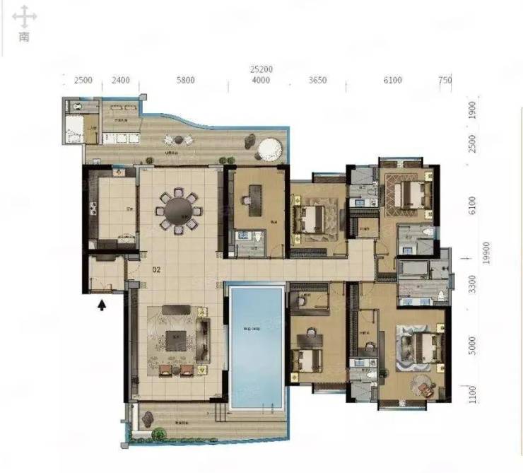 建面约586㎡复式带泳池