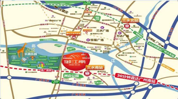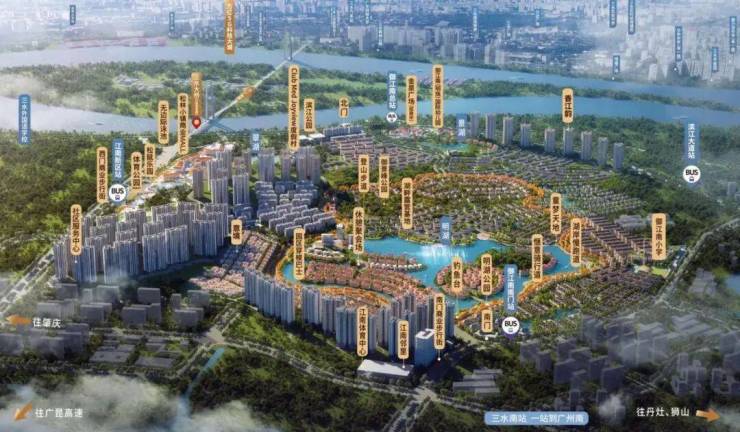 “3横2纵+1城际轻轨+1高铁+2地铁”路网,畅达广佛生活圈,3.1KM到三水南站,距离高速入口(三水西收费站)仅2.1km,可快速接驳三大高速。