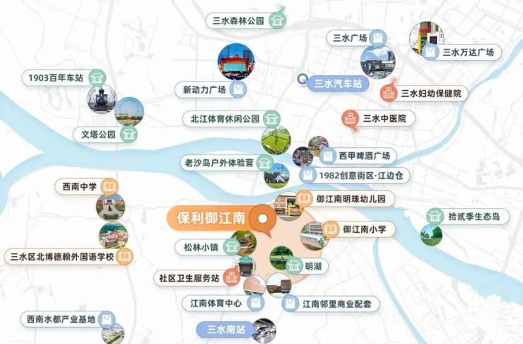 🛒5公里内涵盖三水广场、新动力广场和钧明汇等成熟商业配套
