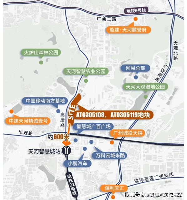 项目位于天河智慧城核心区,具体位置靠近高唐路与大观南路交汇处,属于天河第三中轴的重要节点。