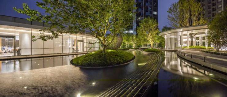 业主下楼就能悠游于一整座“大观园”,清风拂来,一池春水吹皱,羡煞旁人。
