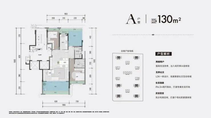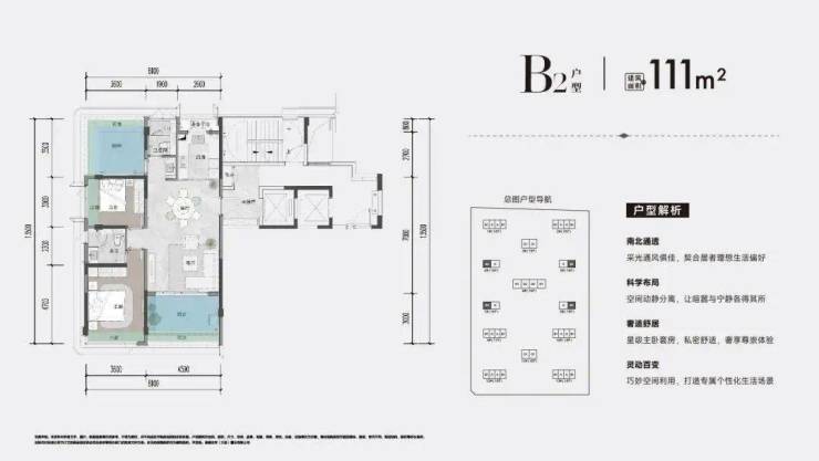 四、更优势的产品:大户型层高 3.3m,小户型层高 3-3.1m,得房率约110%