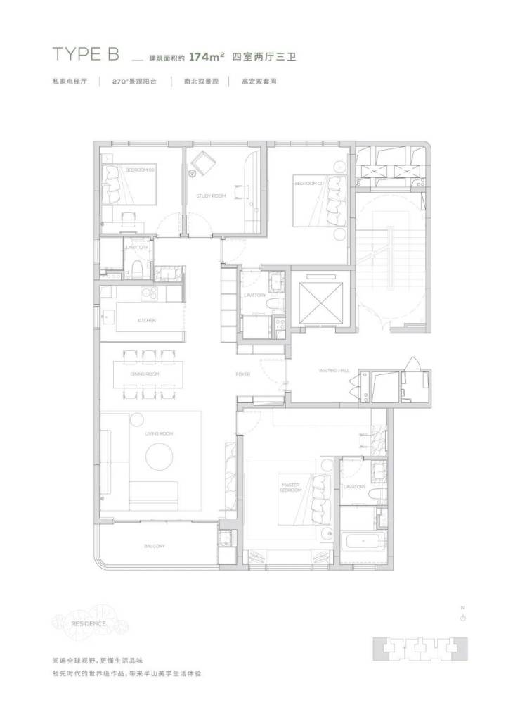 【174㎡户型】独享私家电梯厅-270度环幕观景阳台-高定双套间
