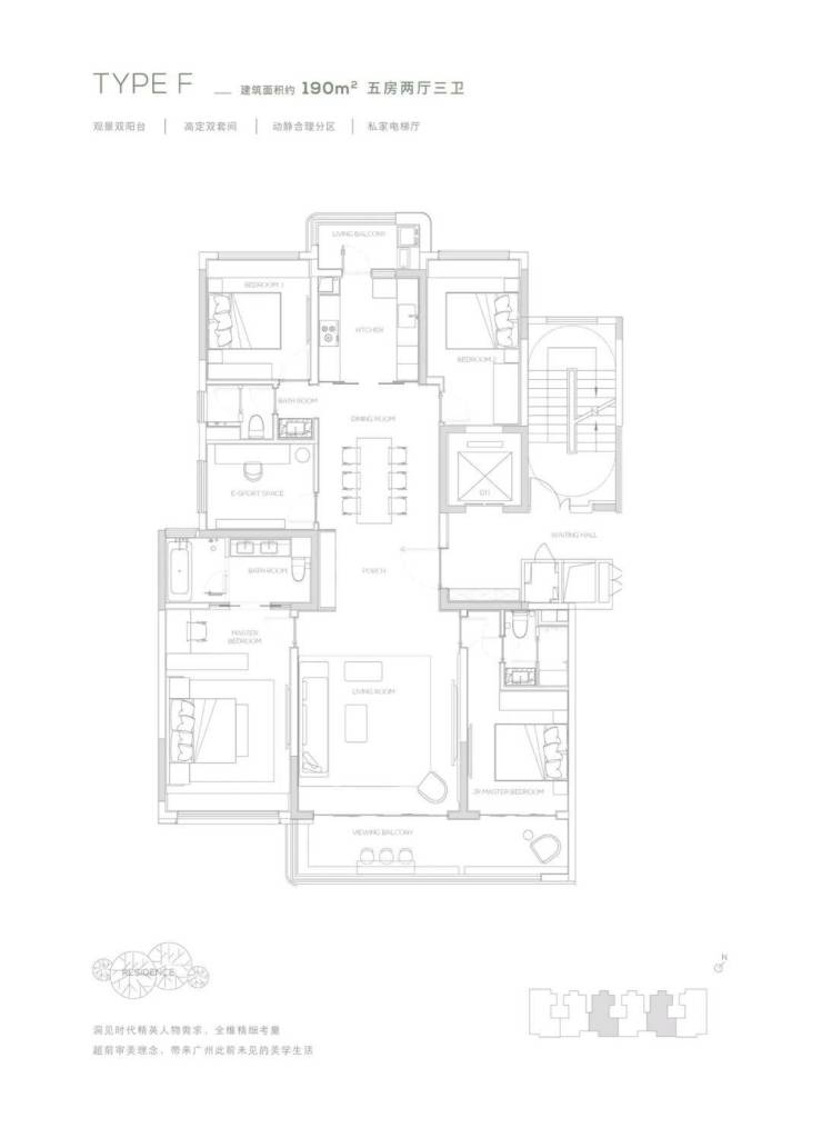 【190㎡户型】观景双阳台-高定双套间-私家电梯厅-双洄游动线