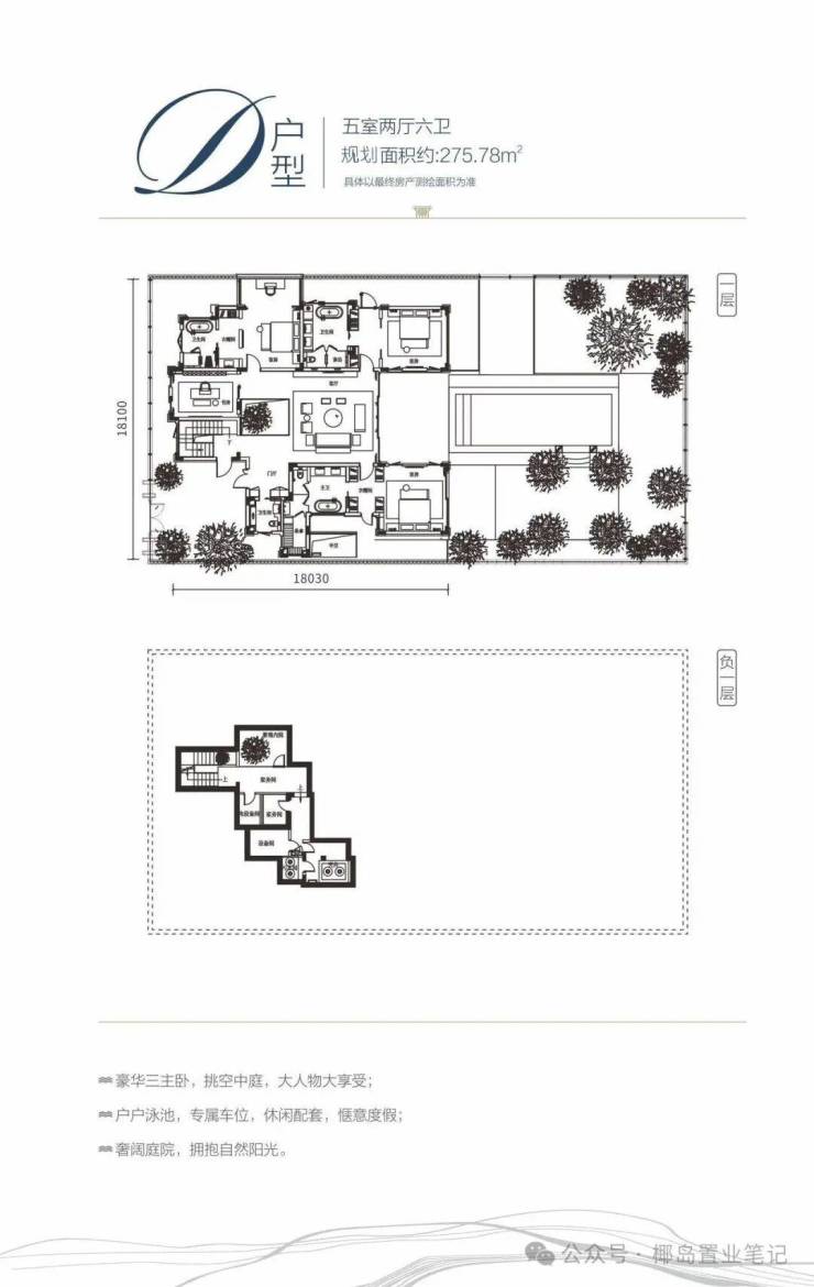 D户型:五室两厅六卫 / 规划面积约275㎡