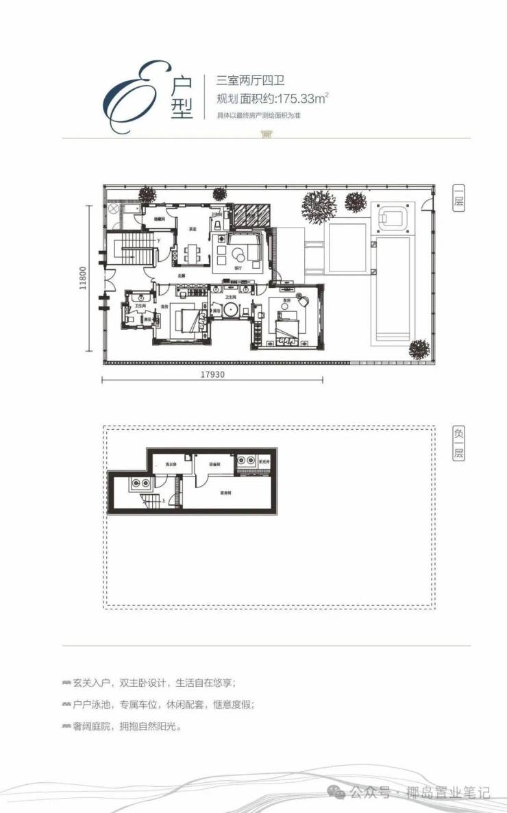 E户型:三室两厅四卫 / 规划面积约175 ㎡