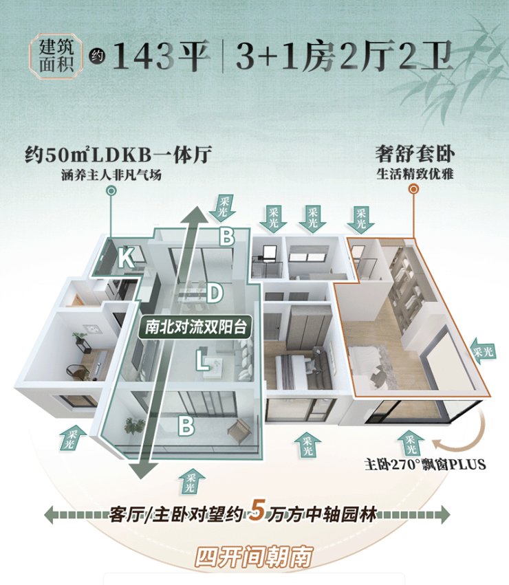 即便占尽天时地利,保利琅悦也没有“懈怠”,而是对佛山人居再次深入理解,死磕产品力。使用率近100%,同面积的产品里面,保利琅悦比别人多1房,生活多一种可能。更重要的是,它还实现了广东人钟情的南北对流双阳台,采光和景观视野通通都是MAX级。四开间朝南,还带南北对流双阳台,餐客厅同宽的LDKB一体化设计,尺度都不输超170平的改善大平层。
