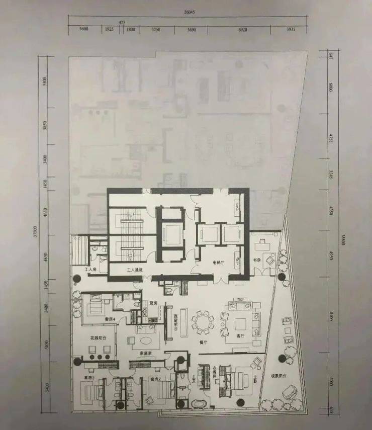 公寓入口从地下1层或地面层围绕住户花园的上下客区域大堂的电梯进入。每个公寓有自己的单独的电梯,与相邻公寓分隔开来,以保证公寓的私密性。