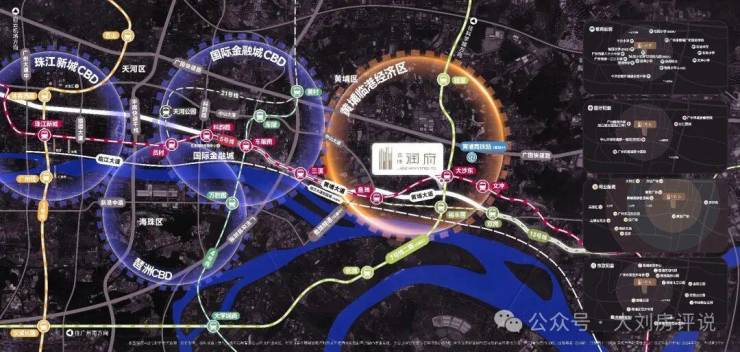 黄埔润府落子老黄埔核心腹地,紧邻广州第二CBD(临港经济区),坐拥双地铁枢纽(5号线与7号线换乘站大沙东站),步行仅300-400米,堪称“地铁上盖”。5号线直通金融城、珠江新城,7号线3站达科学城,8站抵长隆万博,未来鱼珠隧道通车后,15分钟直达琶洲CBD。更值得期待的是,规划中的黄埔高铁站将串联湾区核心城市,进一步强化其交通枢纽地位。