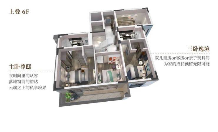 约9米超大面宽,IMAX级风景跃然眼前,买三层享五层,赠送率高达312%,顶配酒店豪华主卧套,全套房设计。