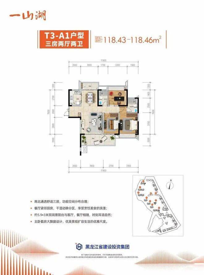 面积:105-119㎡三房两厅两卫