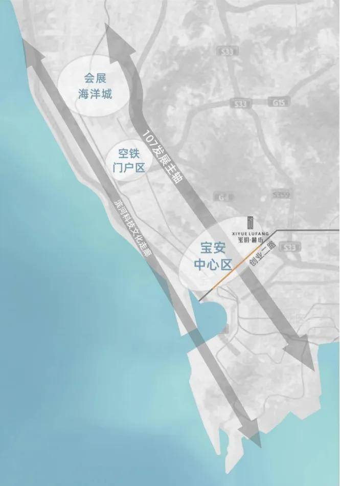 位于西部黄金中轴发展线上的——新安,占据前海“腹地”,前海+宝安中心区双中芯辐射,城市核芯资源尽皆于此。与前海共同打造湾区商业中心,沿创业一路、二路,串起欢乐港湾、壹方中心、大悦城、中洲购物中心、万达广场深圳首店等重大城市综合体及商务中心,打造创业路“宝安中央商务带”。