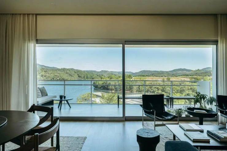 一线看湖景合院600-800万,设计最大限度地发挥一线湖岸优势,约7.5米的巨幕落地窗,超10米的观景阳台,实现一面庭院看山林,一面阳台观湖景。