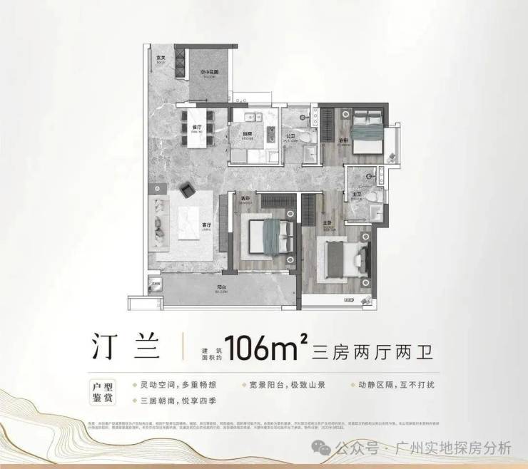 1、低密生态宜居,容积率仅1.2,绿化率高,采用纯板楼设计,南北通透,部分户型可享180°帽峰山景。社区配建2.6万㎡体育公园、全龄段儿童乐园及五重景观园林,营造“新加坡式”花园社区氛围,居住舒适度高。