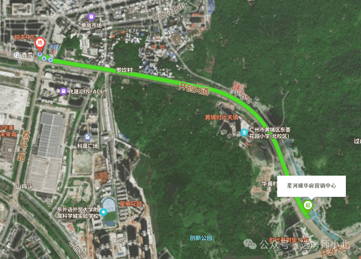 交通方面,距离项目最近的地铁是香雪站,乘坐6号线,4个站可达天河,不过地铁站距离小区比较远,大约有 2km 的距离,公共交通主要依靠公交车接驳。对于没有私家车的居民来说,日常出行可能不太便利。只能通过小电驴或者公交接驳地铁,大概也是半小时左右的车程