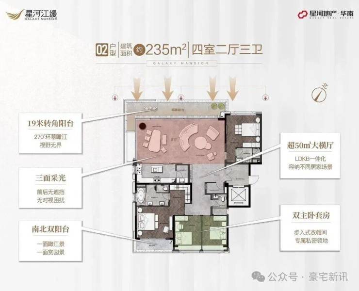——户户一线望江,超100㎡LDKB巨厅,9米转角阳台,270°环幕江景(部分户型)