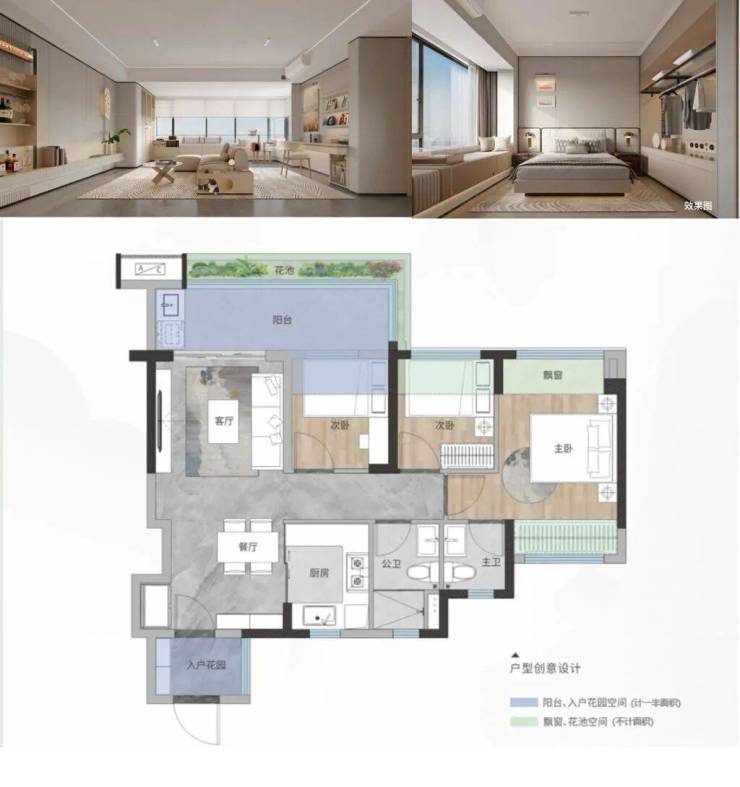 ·户型:约77-95㎡超100%使用率三至四房