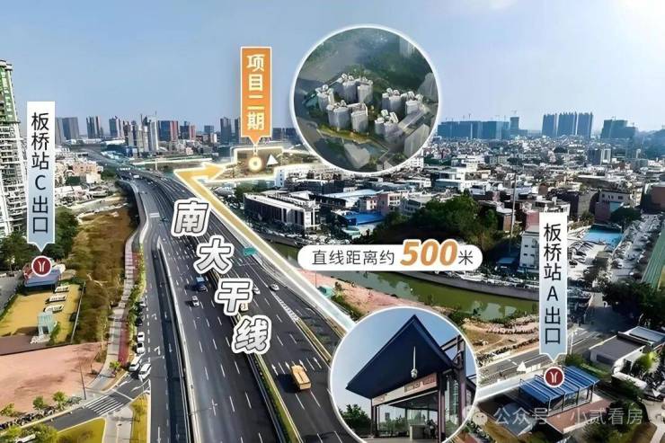 三期组团位于二期组团东侧,离地铁稍微远一点,距离7号线板桥站大约700米,但离中心商业街和学校要近一些。,轻松实现0换乘,2站即达万博核心区域,5站则可抵达琶洲。这一优越的地理位置让居民能够尽享地铁带来的便捷与繁华生活圈。