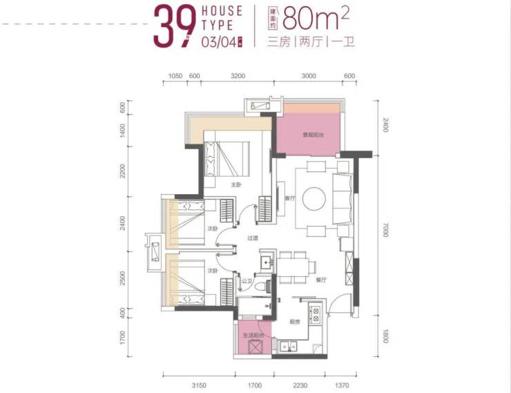 85㎡三房两卫(36、38、39栋户型基本一致)